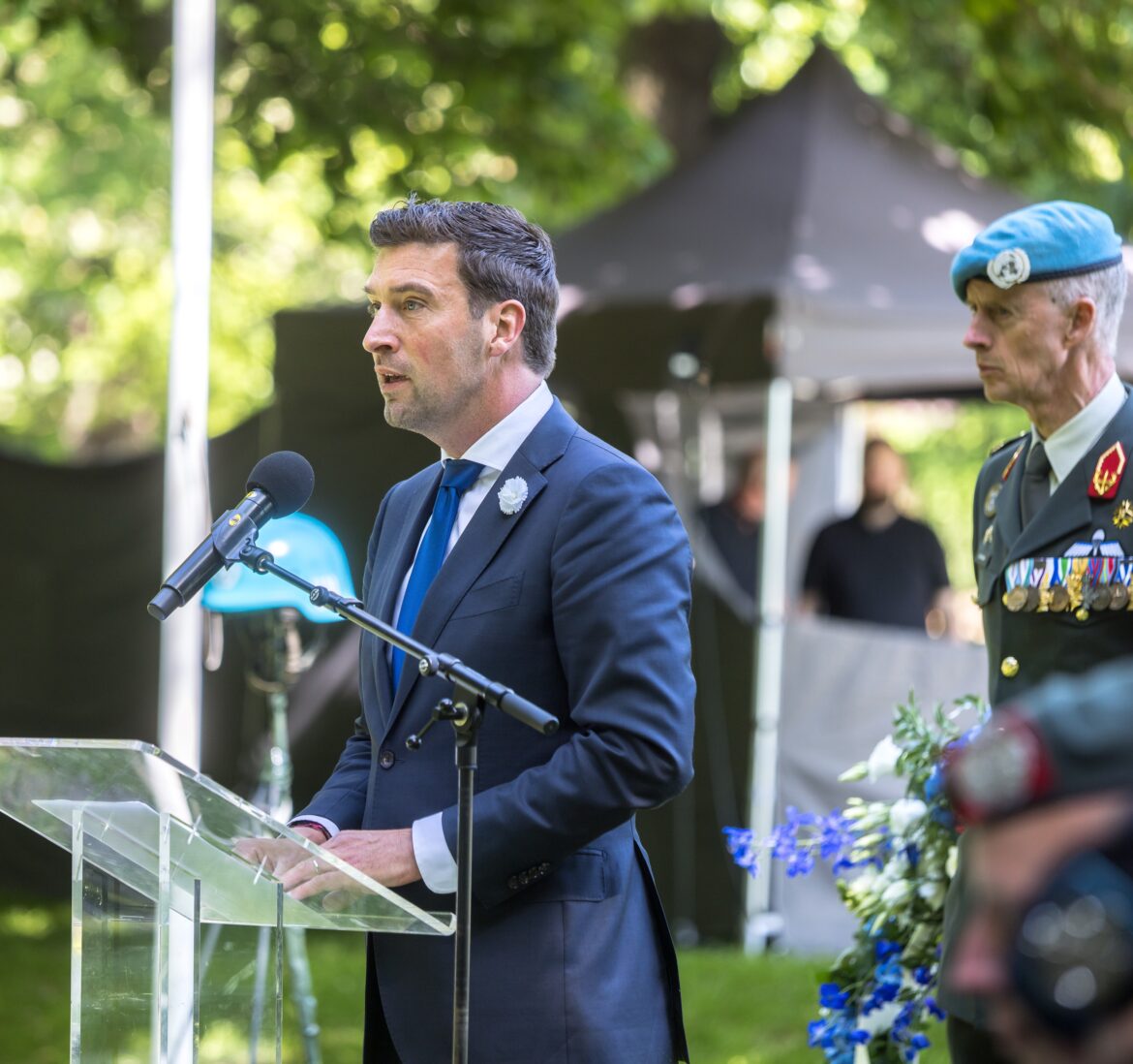 Namens de gemeente Den Haag wil ik alle veteranen van VN-vredeshandhavingsmissies bedanken voor hun inzet en hun offers de afgelopen 75 jaar. In de eerste plaats de 4200 ‘blauwhelmen’ die sinds 1948 het leven hebben gelaten onder UN-vlag. Daarnaast bedank ik eenieder die heeft gediend, maar hier vandaag niet fysiek aanwezig kan zijn. En tot slot noem ik alle vredeshandhavers in de 12 huidige VN-vredesmissies.